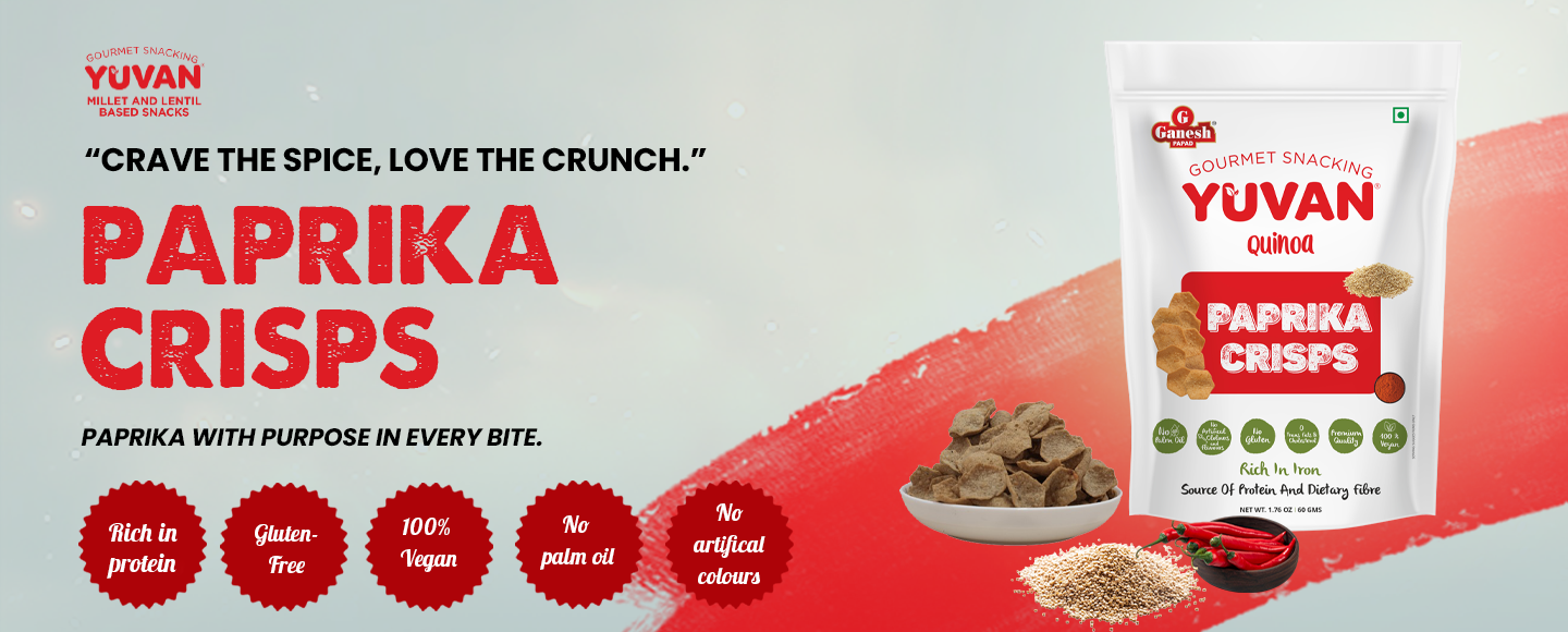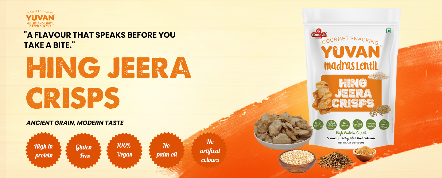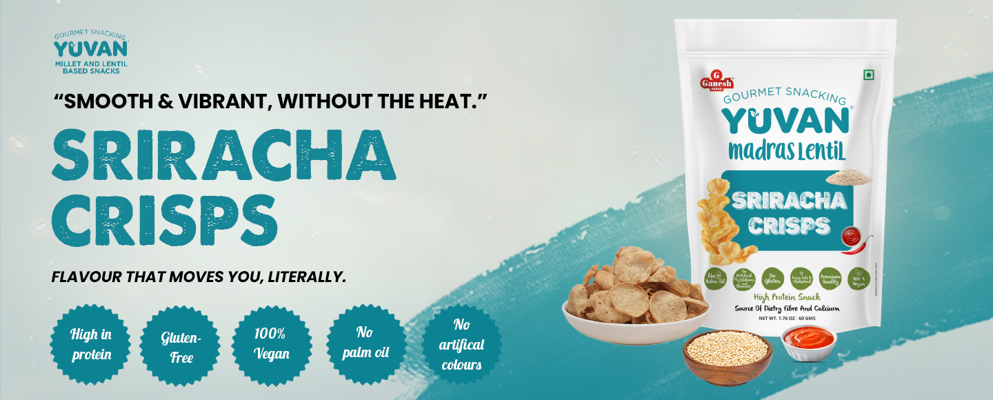 At Yuvan Gourmet, we believe snacking should nourish the body as much as it delights the senses. Our crisps are crafted from millets, lentils and quinoa, delivering a rich source of protein, naturally gluten-free goodness and the promise of  zero palm oil.