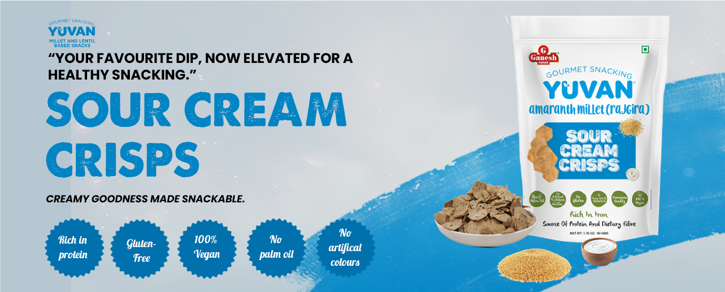 Sour Cream Crisps are made from amaranth millet (rajgira),naturally rich in calcium and iron, supporting bone strength and overall vitality. The creamy taste makes every snacking moment indulgent yet light. Crafted from 100% vegan, gluten-free, premium ingredients, these crisps are free from added sugars, palm oil and artificial colors. With zero trans-fat, Sour Cream Crisps provide a wholesome, guilt-free experience for mindful snacking.